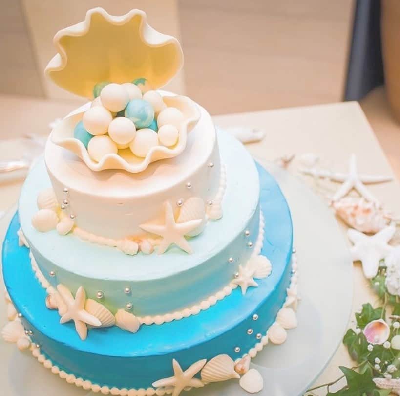海をイメージさせるマリンテイストや、トロピカルなデザインなどが人気です!マリンテイストなら王道に、貝殻やヒトデ、クリームで波を表現したり、青と白のグラデーションなどとまるでリトルマーメイドの世界観に。トロピカルなデザインは、まるで南国!オレンジや黄色、ピンクのカラーでハイビスカスや、ヤシの木を入れることでリゾートビーチを想像させるケーキになるのでオススメです。