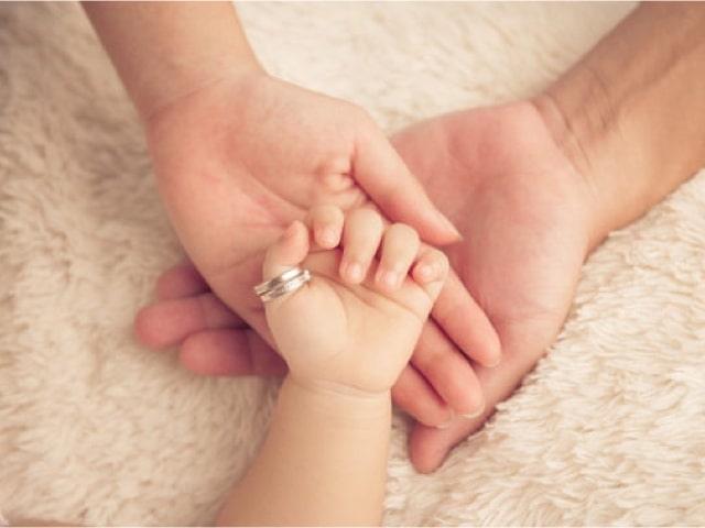 赤ちゃんのいる夫婦におすすめなのが、2人の結婚指輪や婚約指輪を使ったリングフォト兼ベビーフォト。こちらは購入からずっと変わらないサイズの指輪と、これからどんどん成長していく赤ちゃんの手という2つの異なる対象を象徴した一枚になります。夫婦としての成長していく様子や赤ちゃんの未来への希望が詰まった一枚に。